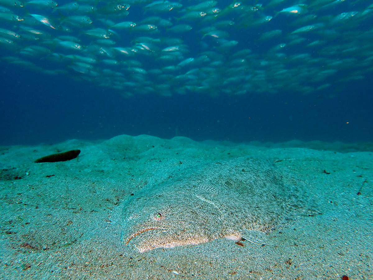 すこぶる快調な透視度です。個人的に年始休みをいただき5日ぶりの内浦ビーチ。この数日の間にいっそう魚影が濃くなり、シーズン最高潮を迎えています。
