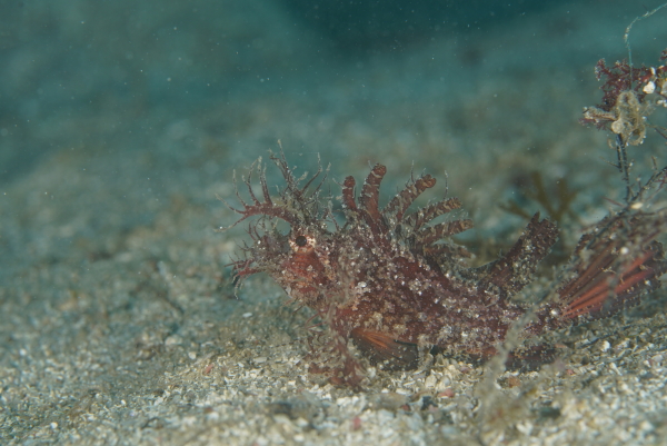 内浦ビーチ砂地水底には多くの「モノ」があちこち点在しています。それは空き缶、空きビン、ウニ殻、貝殻などなど。特に空き缶空きビンは一般通念としてそれはゴミではありますが、しばらく放置されている内浦ビーチのそれは、生物の住み家であったり生き物自体が目印として役目を果たしているモノとなっています。ウニの殻や貝殻も同様です。