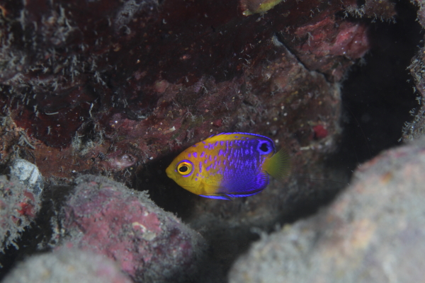 『内浦ビーチ』 ヒレグロスズメダイyg 敷石エリアにたくさんいます。