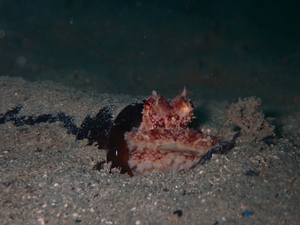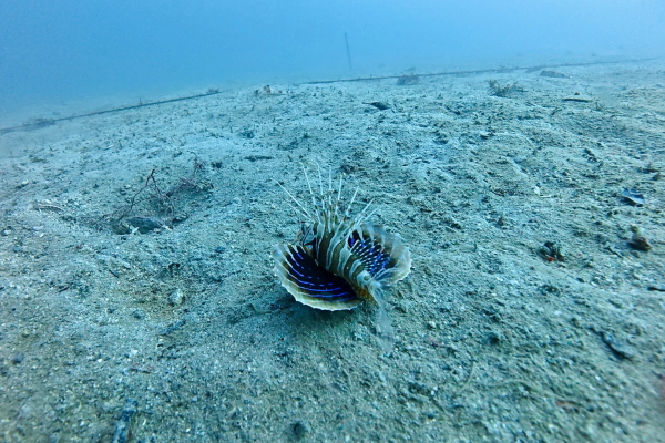 薄暗い水中ながら今期一番の朝一透視度でしたが、周囲から濁り水が入りこみ午後には大きくダウン。