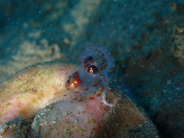 おびただしいイカ墨が漂っていました。おそらくカミナリイカのもの。