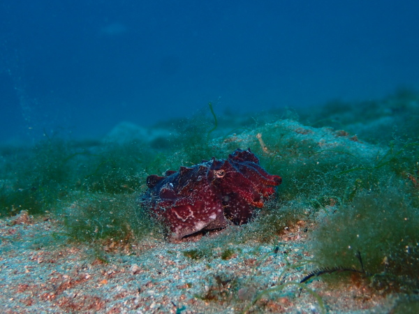 未明の前線通過、内浦ビーチにうねりが入りましたが-10m以深は穏やか。