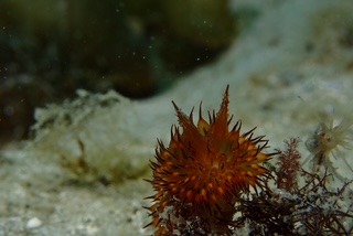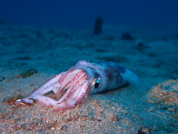 【内浦ビーチ】スルメイカの亡骸にしがみつくホソハスエラウミウシ