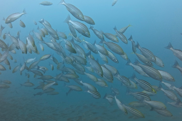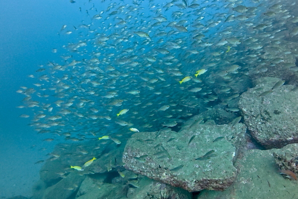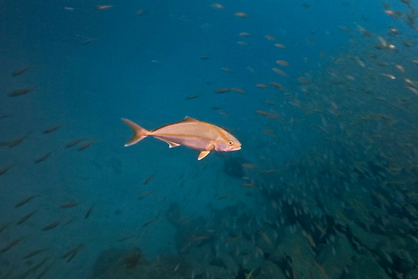 クロホシイシモチ大群にカンパチのアタック、オオモンハタやハナミノカサゴも虎視眈々。