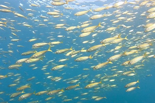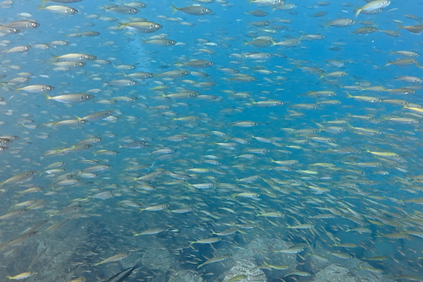 『内浦ビーチ』 日に日に数が増えるアジの群れです。メアジの小さい群れも見られ今後が楽しみです。
