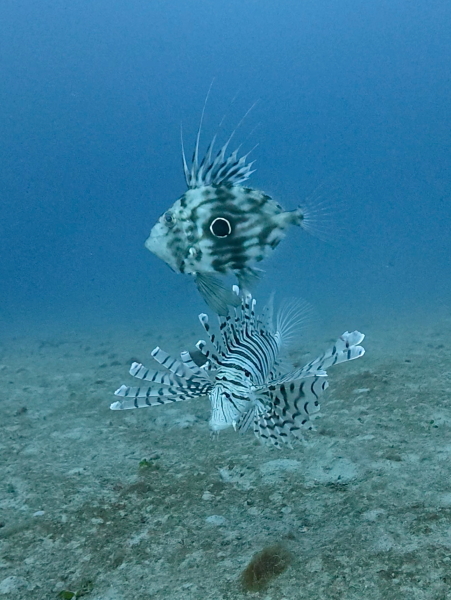 昨年は一度も出会えず、今期もダメかと思っていたマトウダイ。久しぶり!ミノカサゴとランデブー。