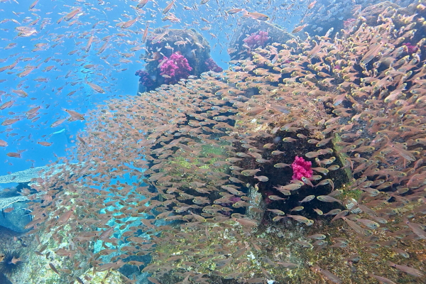 きれいで温かい潮が入ってコンディション最高!ソフトコーラルは全開、魚たちも活性高く生き生き群れ泳いでいました。