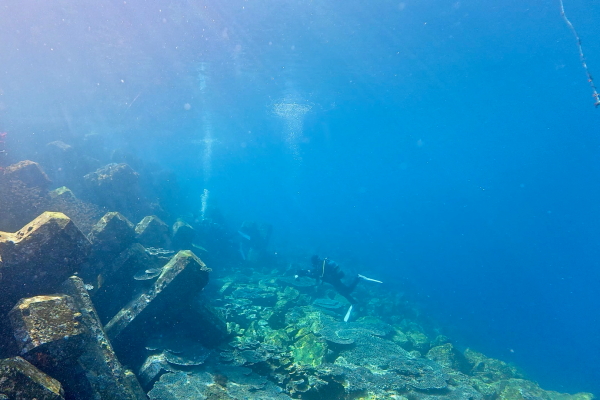 浅場は20~15mと透視度良好、水深20m以深はややにごりあり。水温は近年になく14℃台です。