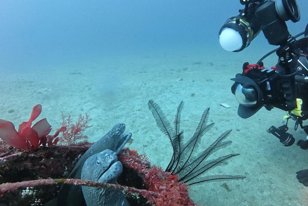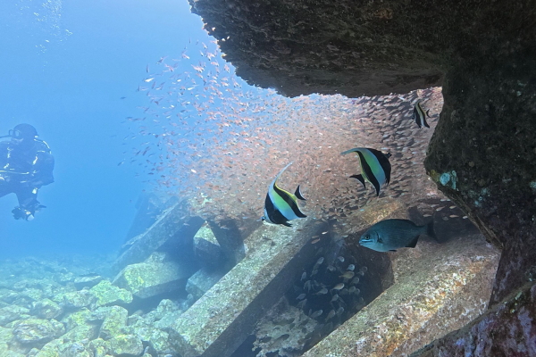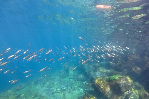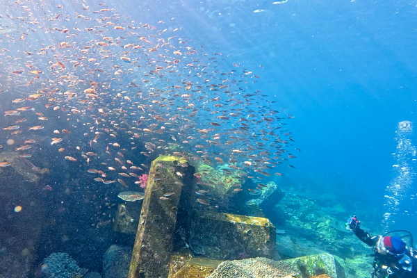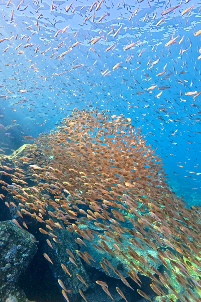 さらに水温が上がり表層18℃ 浅場の透視度は最高、魚たちの活性高く感動の光景。