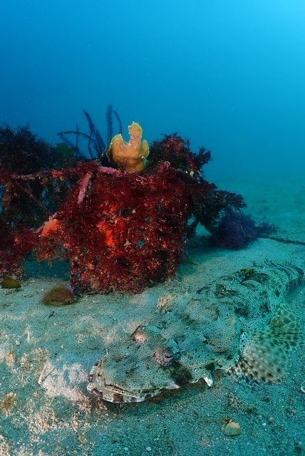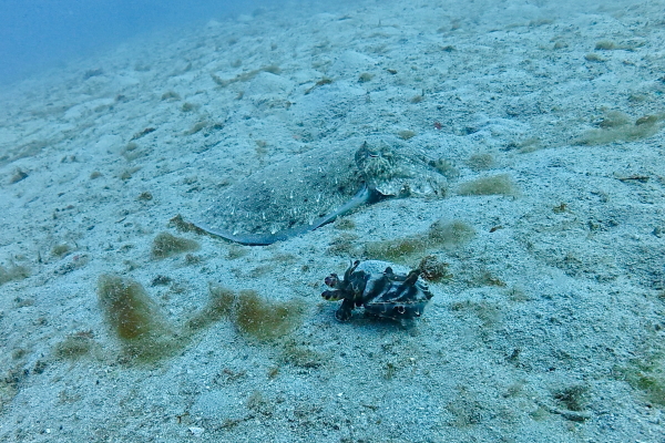 【内浦ビーチ】ワニゴチと尻尾がはみ出しているオオモンカエルアンコウ
