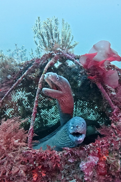 【内浦ビーチ】オナガウツボ 今日はなんと5匹も丸カゴに入っていました。