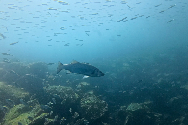 浅場の透明度は少し回復し、敷石エリアの魚影が迫力満点です。