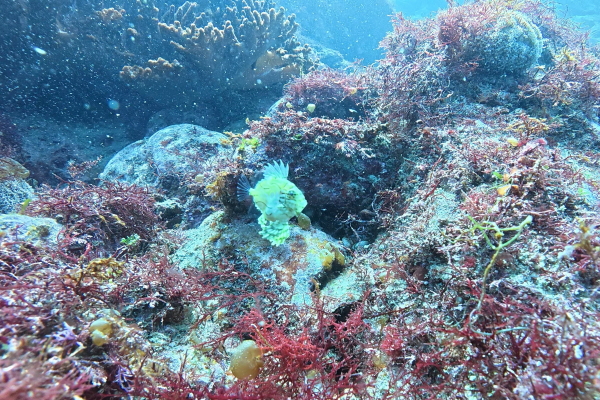 緑っぽさはやや薄れ、浅場の透視度も回復。水温は15℃台とこの時期にしては低め。