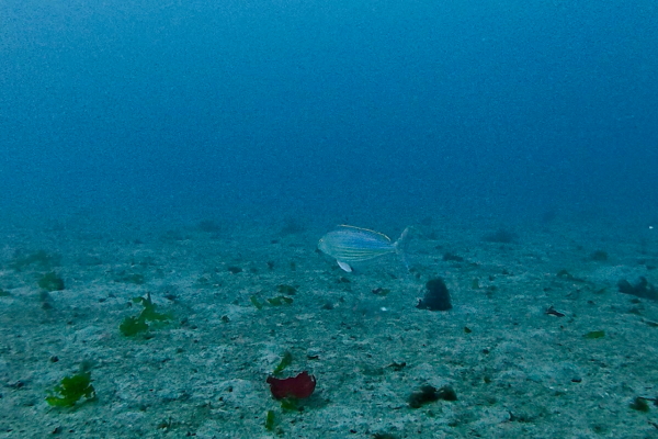 未明の前線通過で内浦ビーチは今期初の大きなうねりが入りました。浅場は濁りましたが-15m以深は視界良好。