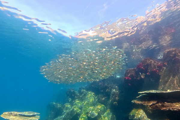 浅場の透明度は少し回復し、敷石エリアの魚影が迫力満点です。