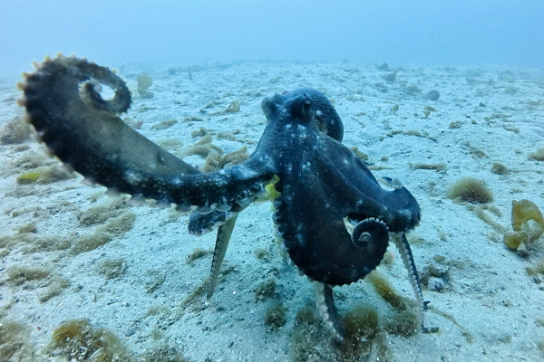 紀伊半島東沖低気圧の影響で弱いうねりが入りました。午前中は浅場20mほどあった視界は巻き上がった浮遊物でだんだん悪くなり10mそこそこに。