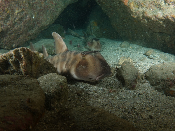 お目当てのネコザメは10匹もおり、岩場の隙間や砂地で休憩していますよ。