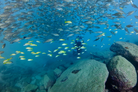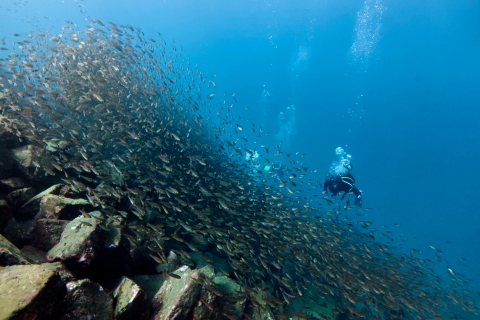 クロホシイシモチやマアジの群れを存分に観察できます。