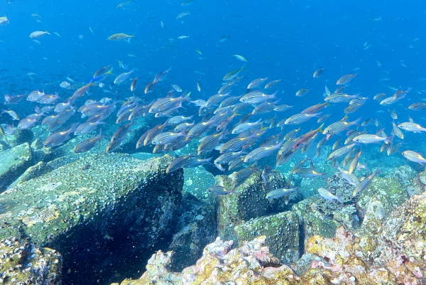 『内浦ビーチ』 例年よりも数が多いノコギリダイの群れ