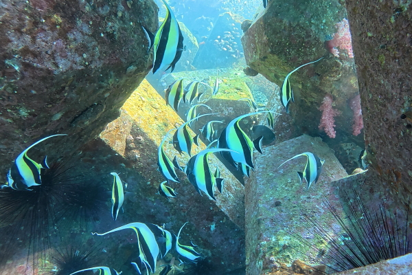 透明度はやや持ち直し、青みある潮が入っていました。今日はガイドゲストなく調査で1ダイブ。
