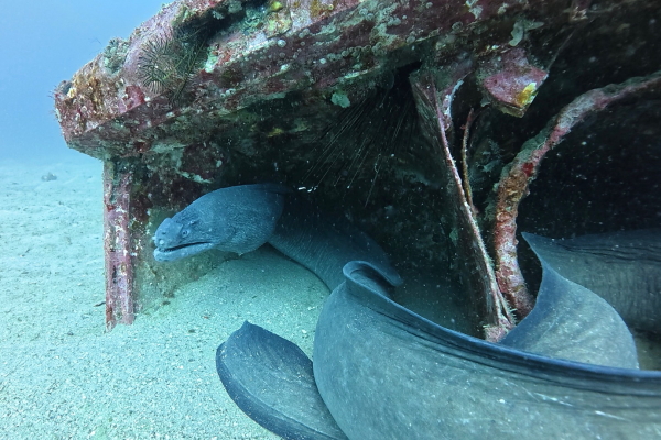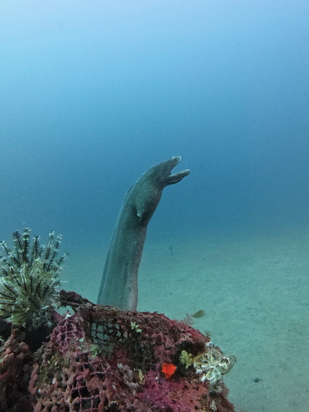 昨日は内浦ビーチで初めて3匹のオナガウツボに出会えて興奮。今日もいるかと行ってみると、