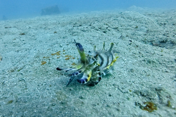 【内浦ビーチ】ツノカサゴ 移動してきたのか-21m奥の丸カゴの近くで発見