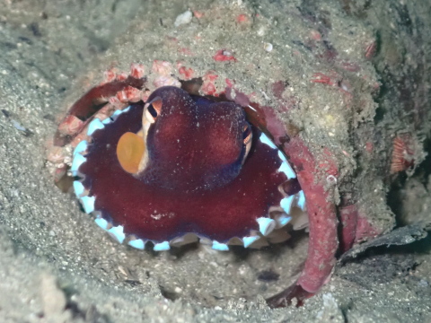 【内浦ビーチ】メジロダコ この瓶がお気に入りらしく、持ち運んでます。