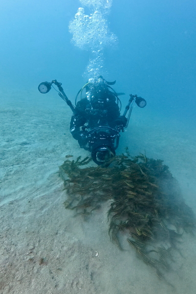 昨日は内浦ビーチで初めて3匹のオナガウツボに出会えて興奮。今日もいるかと行ってみると、